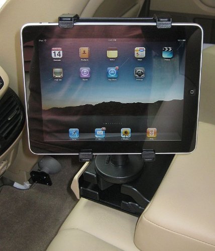 Car Cup Holder Mount with Expandable Cradle for Apple iPad, Apple iPad 2, Samsung Galaxy Tab, eLocity A7, Blackberry Playbook, Motorola Xoom, HP Slate, Viewsonic gTablet ViewPad, SuperPad and Others Description:Utilizing an adjustable cradle to grip your iPad, your device is securely held for watching movies, reading the newspaper, listening to music or using it as a GPS. The mount has an adjustable base that will fit the great majority of cup holders on the market. The popular Cup Holder Pedestal is about 5" tall. It features an adjustable flywheel base that expands to fit varying cup holder opening except for those that are so large that the 7-Eleven Big Gulp falls over.This mount is made for using your iPad in landscape mode. Don't know how to get it in landscape? Just flip the switch on the upper right side of your iPad, and just turn it!